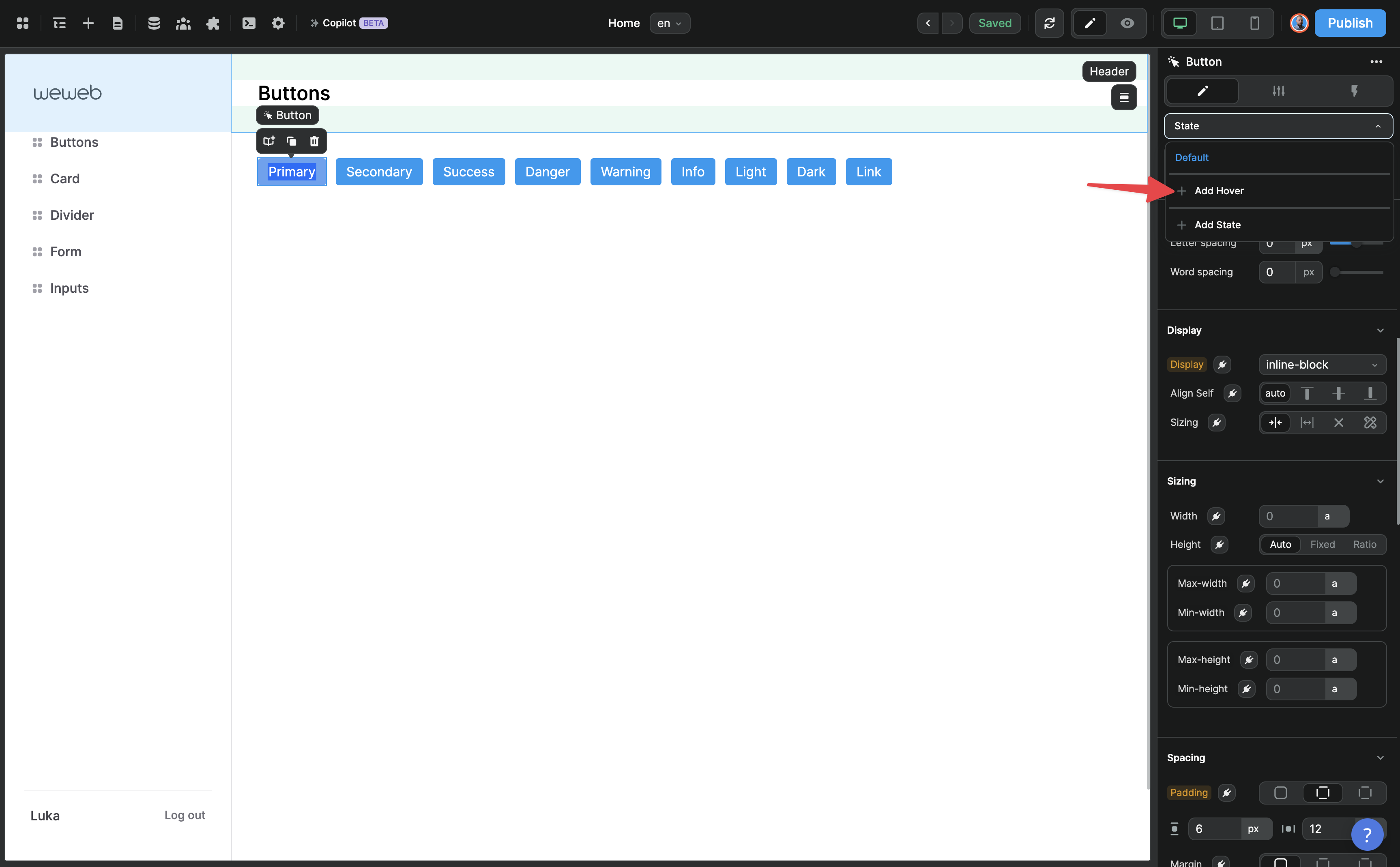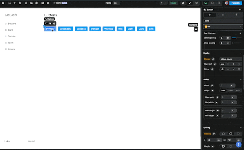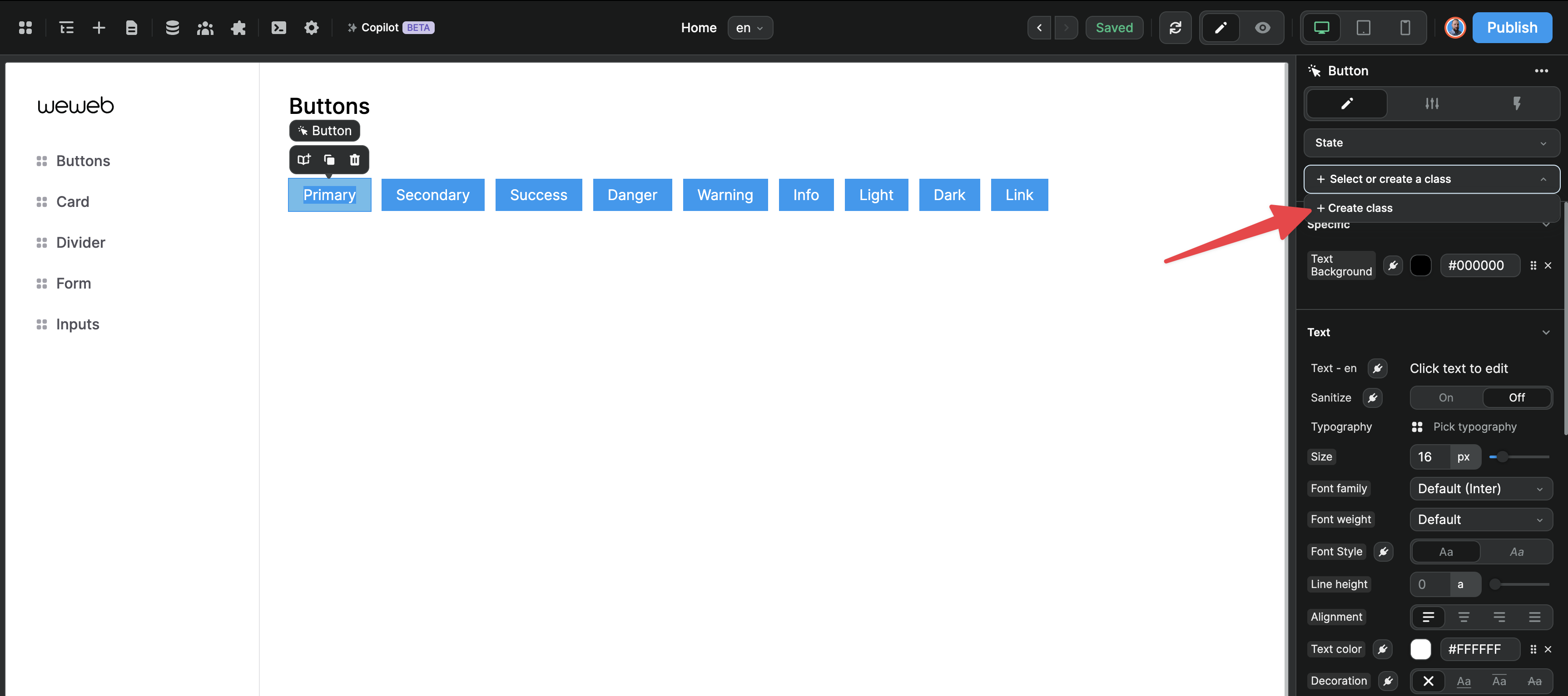 In WeWeb, if you wish to reuse a specific style, you can choose to create a class using the following option π β