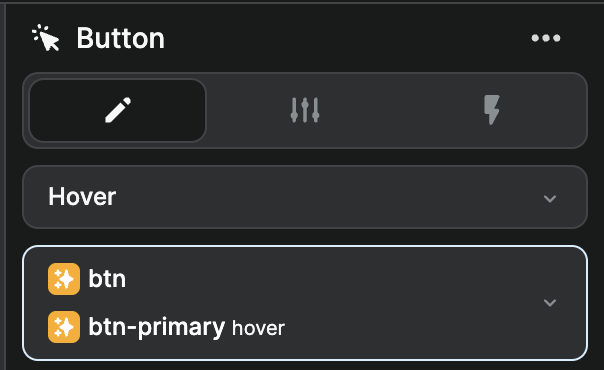 And make sure we are on that state when styling the element. In the example below, we are on an element with both the btn and btn-primary classes and we can see above the class names that the Hover state is selected: β