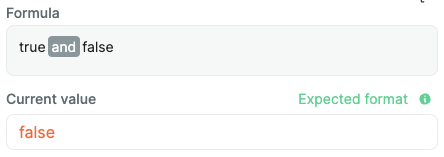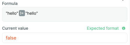 Opposite of =. Check for inequality between two values. Equivalent of JavaScript's !=.