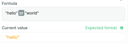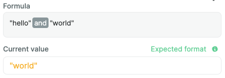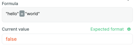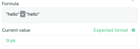 Check the equality between two values. It's the nocode equivalent of JavaScript's ==.