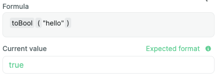 Given a value, this formula will return a boolean value (true or false) based on the value truthiness of falsey-ness.